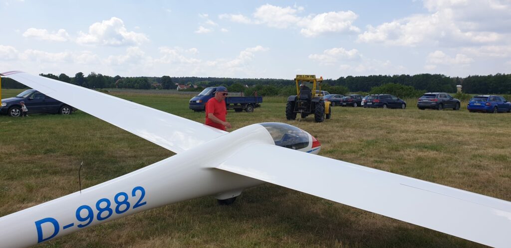 Dennis war auch in der Luft, er ließ sich auf den Ventus einweisen. Nach den ersten Platzrunden und Landungen startete er am Nachmittag halb 2, um noch ein wenig „auf Strecke“ zu gehen. Dabei schaffte er noch über 600km!