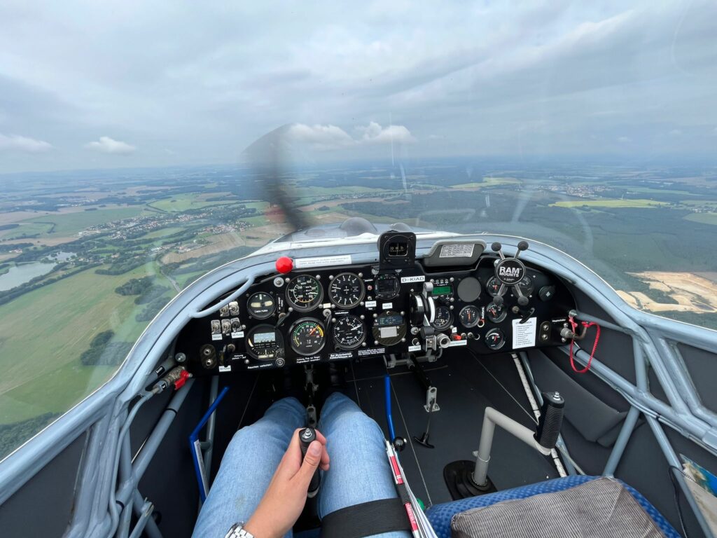 Auch auf der Seite der motorisierten Luftfahrt tat sich in letzter Zeit einiges. Mehrere Vereinsmitglieder haben in dieser Saison mit der Ausbildung auf dem Motorsegler begonnen, um ihre TMG (Touring motor glider) Lizenz zu erwerben. Dies ist ein relativ schneller Prozess, wenn man schon eine Segelfluglizenz besitzt. Wie schnell, das zeigte Robert, der glücklicherweise auch außerhalb der Wochenenden ein paar Flugtage nutzen konnte und innerhalb von gut zwei Wochen bis zur Lizenzprüfung fortschritt. Diese hat er jetzt am Samstag erfolgreich abgeschlossen.