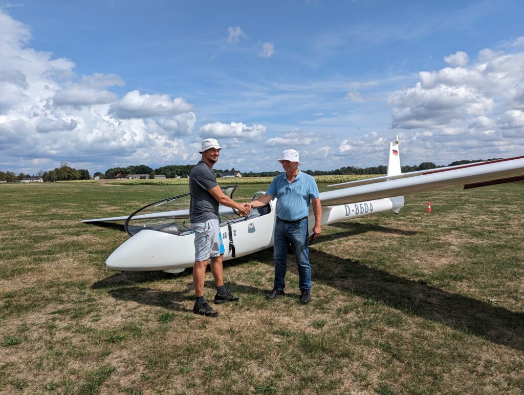 Am 26.08. absolvierte Sascha seine Prüfung für die Segelfluglizenz. Diesem Moment hat er lange entgegengefiebert und wir freuen uns mit ihm, dass er jetzt diese wichtige Etappe erreicht hat.
