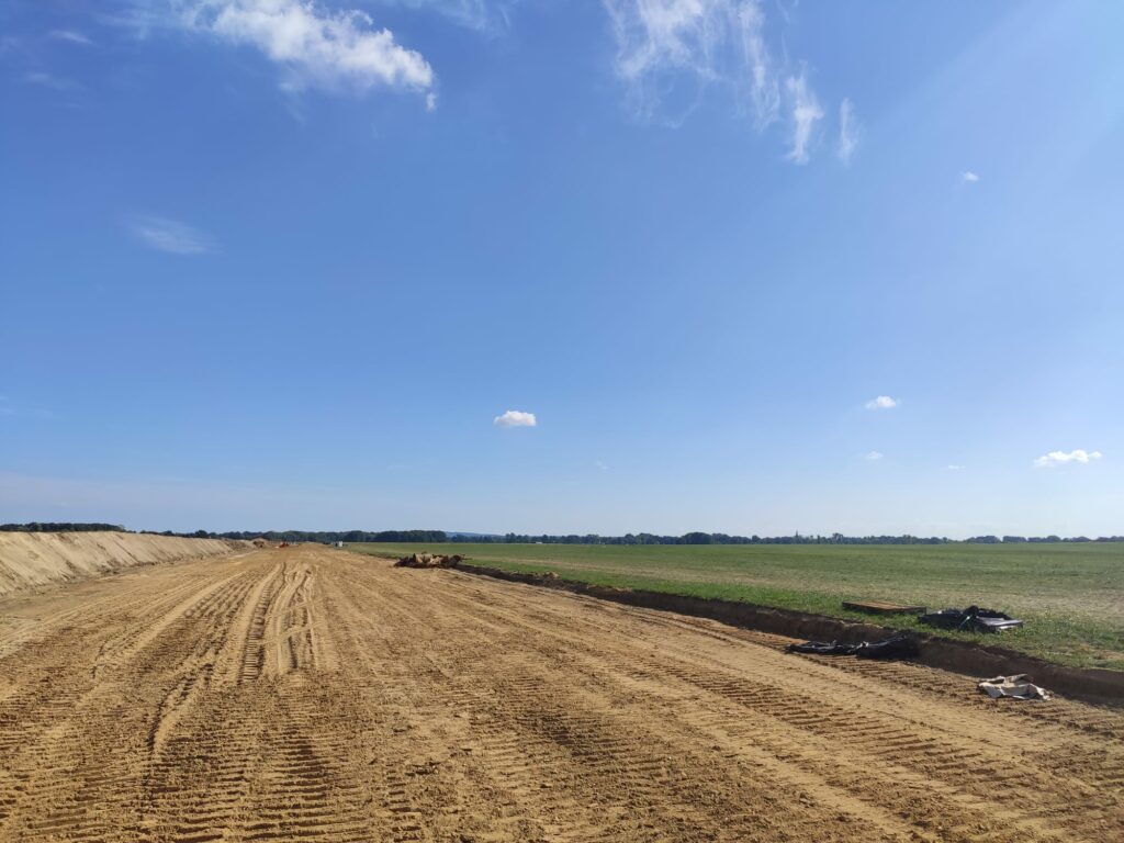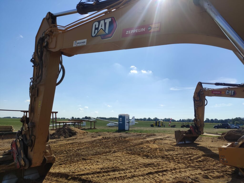 In den letzten Wochen beschäftigten uns Bauaktivitäten, aber diesmal nicht unsere eigenen. Das Wasserwerk in Sdier, in direkter Nachbarschaft zu unserem Flugplatz, erneuert momentan eine seiner Verbindungsleitungen zu seinen Brunnen. Diese Leitung führt einmal quer über das Flugfeld, wie man auf dem Titelbild gut sehen kann. Das bedeutet natürlich auch, dass wir mit manchen kleinen Einschränkungen für den Flugbetrieb leben müssen, da unsere üblichen Flugbetriebsflächen teilweise direkt an die Baustelle grenzen. Wir haben deshalb in Absprache mit den Behörden unsere Landebahn temporär angepasst, um alle nötigen Sicherheitsabstände einzuhalten.