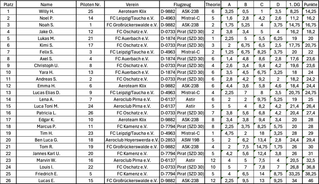 Am nächsten Morgen stand nach dem toll vorbereiteten Frühstück die Siegerehrung an. Mit Spannung wurde die Bekanntgabe der Wertung erwartet. Dritter wurde Noah vom Fliegerclub Großrückerswalde, der zweite Platz ging an Noel aus Leipzig und auf dem ersten Platz stand: Willy vom Aeroteam Klix!