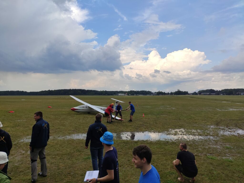 Schon am Freitag war das Glück auf unserer Seite. An diesem Nachmittag absolvierten die Piloten ihre Einweisungsflüge, um sich mit den örtlichen Gegebenheiten vertraut zu machen. Während nördlich und südlich des Platzes die Regenschauer niedergingen, blieb es in Klix bis zum späten Abend trocken und die Flüge konnten durchgeführt werden. Währenddessen wurde von den Klixer Helfern das Abendessen vorbereitet und die meisten Teams rüsteten ihre Flugzeuge auf, um sie in der Segelflughalle unterzustellen.
