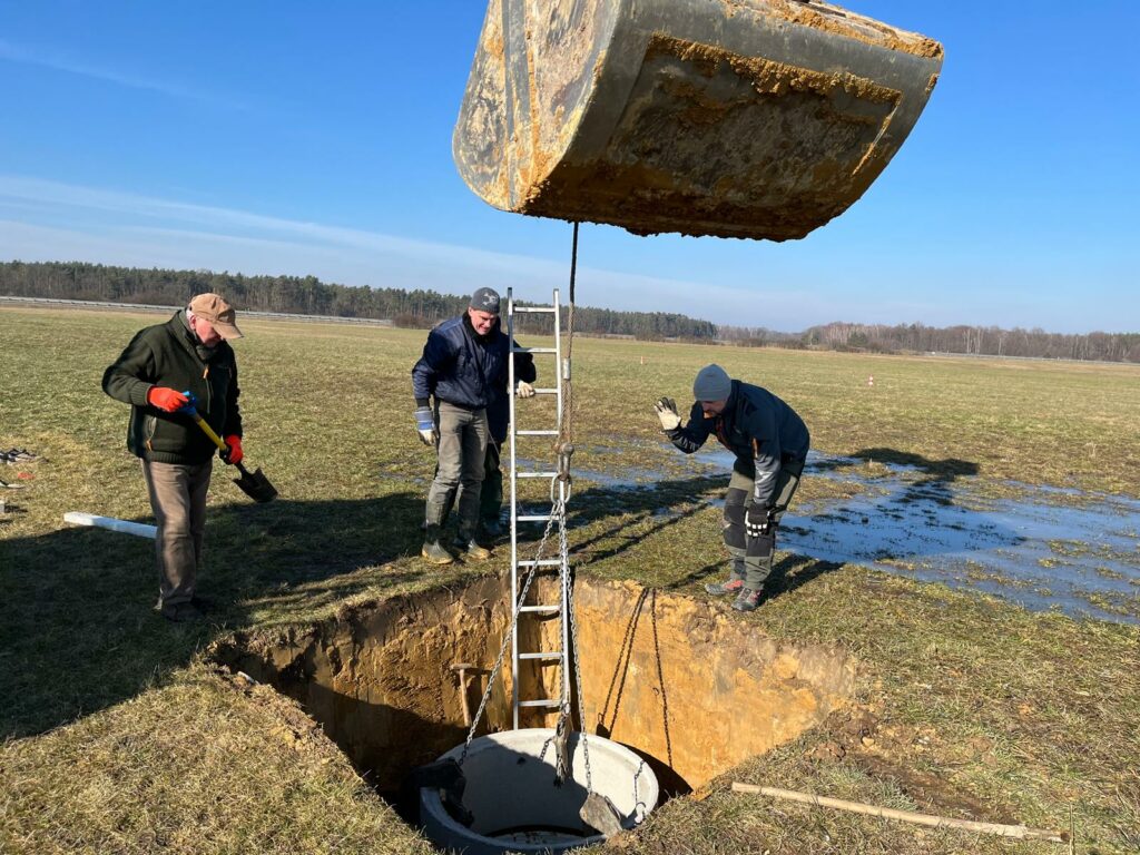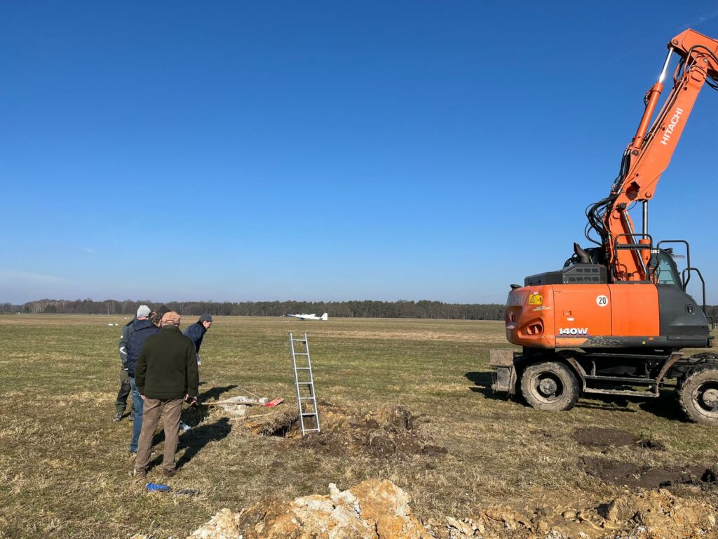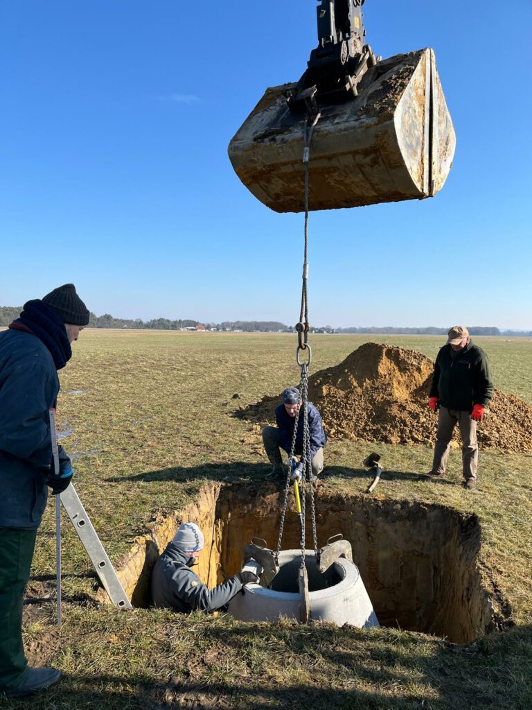 Die „Haus und Hof“-Brigade traf sich am Wochenende zu einem Arbeitseinsatz auf dem Flugplatz. Es wurden mit technischer Unterstützung durch die Agrargenossenschaft zwei Pumpenschächte in Problemzonen der Wiese abgeteuft. Bei erhöhtem Wasserständen können wir in Zukunft dort das Wasser abpumpen und an geeigneter Stelle versickern lassen (siehe Aktion aus dem Frühjahr 2024).