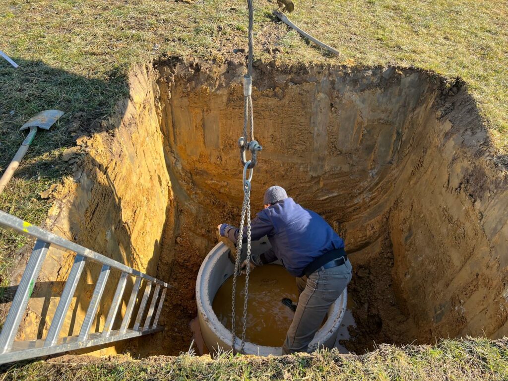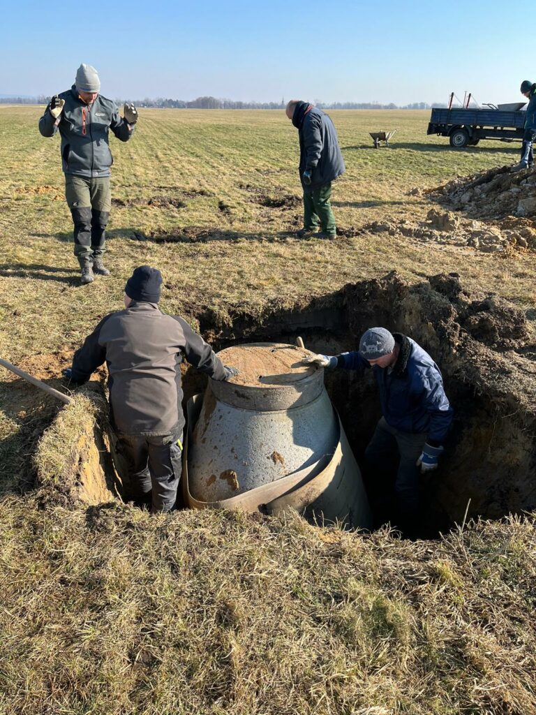 Die Arbeiten erwiesen sich als schweißtreibend: Der schwere Lehmboden, das schnell steigende Grundwasser und die wachsende Schlammkruste an den Schuhen waren herausfordernd. Die Mannschaft war am Abend sichtlich geschafft – aber froh, soweit gekommen zu sein…