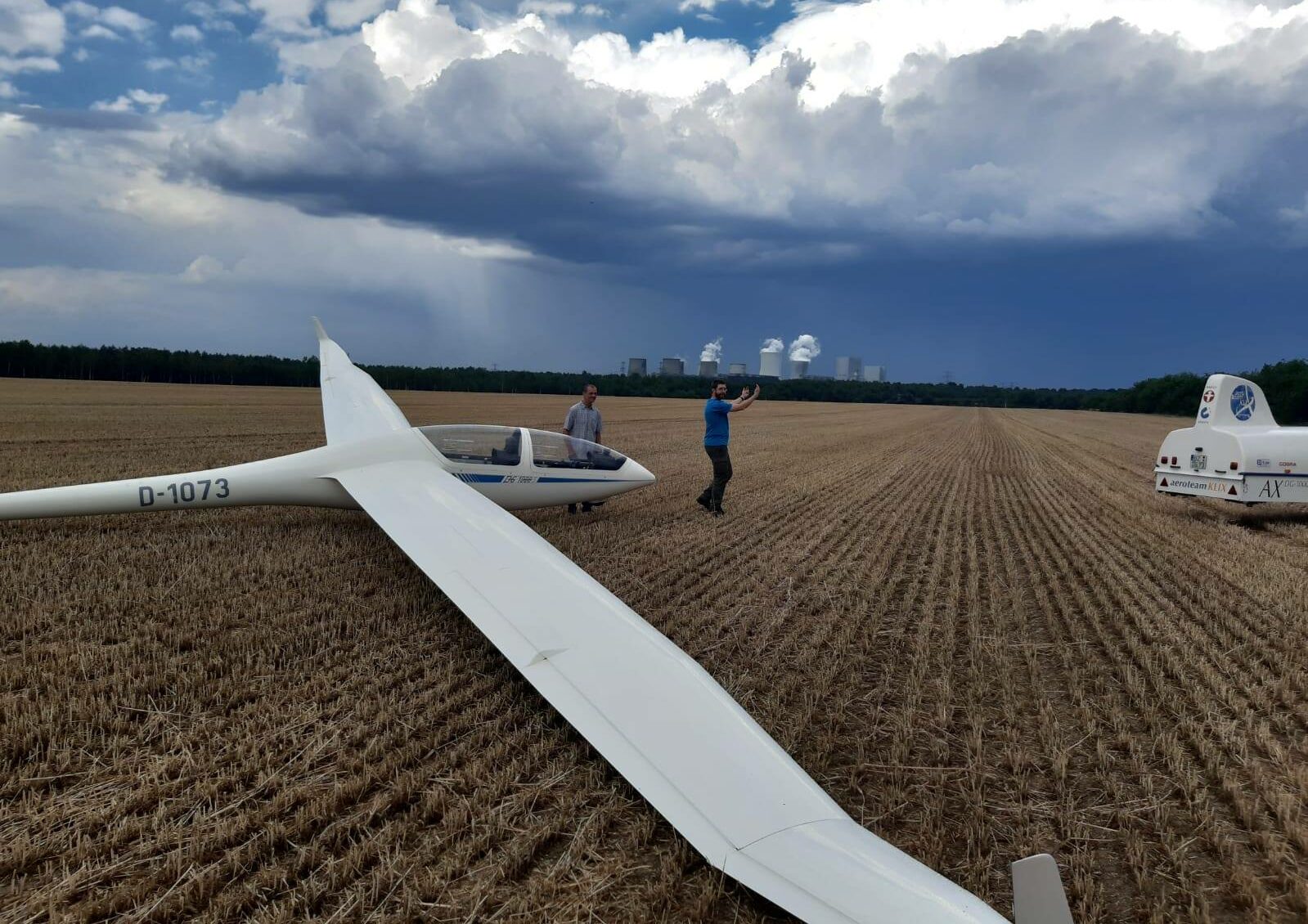 Aufwinde zu finden und zu nutzen ist nicht immer ganz einfach und plötzliche Wetterumschwünge können jegliche Möglichkeit zur Höhengewinnung verschwinden lassen. Wenn dann kein Flugplatz in der Nähe ist, entscheiden sich die Piloten für eine Außenlandung. Das bedeutet, dass sie aus der Luft ein geeignetes Feld wählen und dann dort landen. Das ist ein ganz normaler Vorgang, den fast alle Piloten schon mehrfach erlebt haben. Segelflugzeuge sind konstruktiv übrigens auch für Landungen auf raueren Untergründen ausgelegt. Nach der Landung wird man von seinen Freunden abgeholt, rüstet das Flugzeug gemeinsam ab, verstaut es im Anhänger und bringt es wieder zurück zum Startplatz.